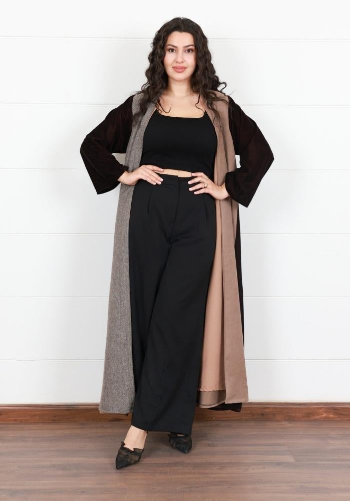 بشت شتوي قطعة مخمل فيسكوز لون بيج بني