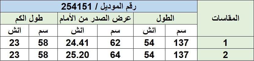 جدول المقاسات:-