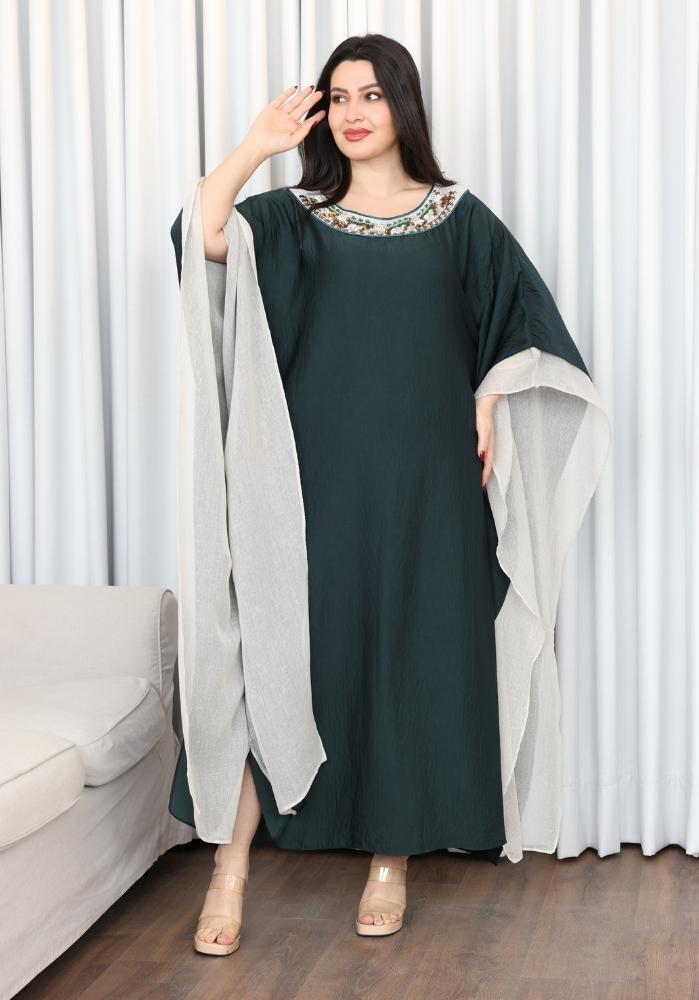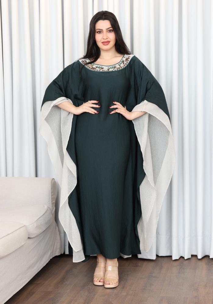 جلابية صيفي فضفاض بياقه مزينه بشك لامع لون بترولي