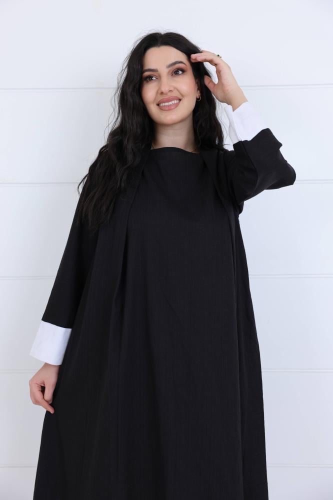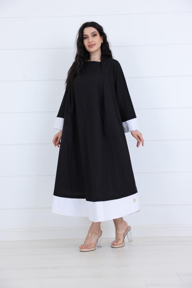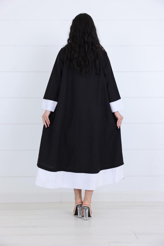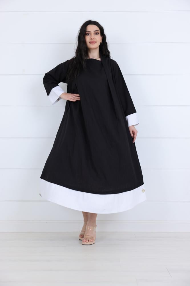 جلابية لنن ميدي مريح للسفر والرحلات لون اسود