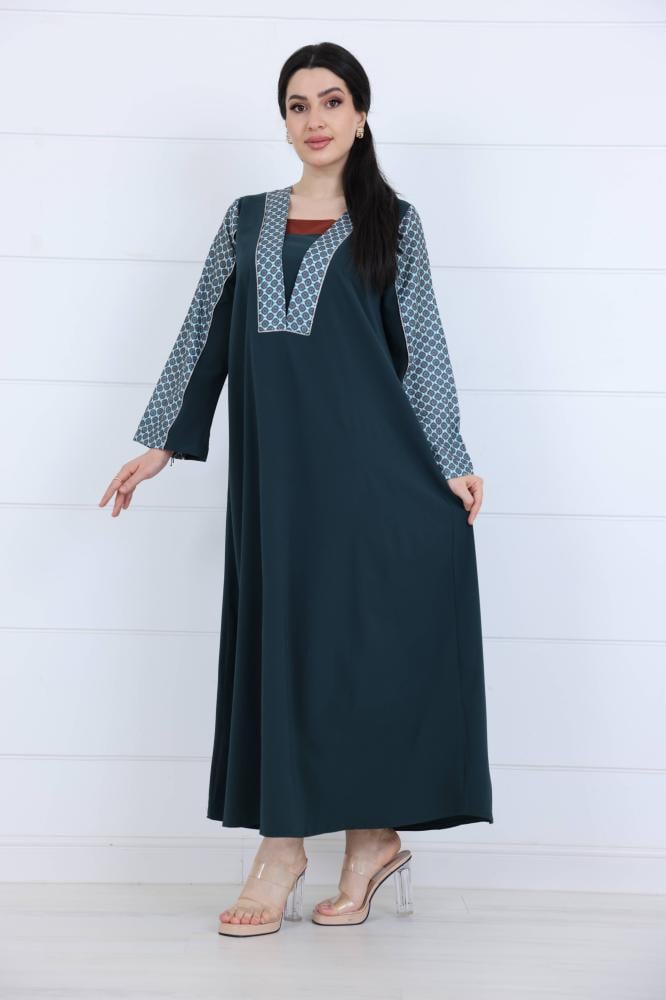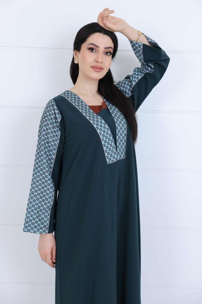 خلي إطلالتك تعكس ذوقك الراقي مع هذي الجلابية المشجرة الأنيقة بلون أخضر غامق، بتصميم عملي وأنيق يناسب الخروج والمناسبات الخفيفة.