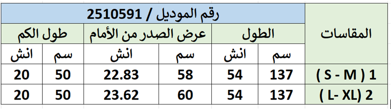 جدول المقاسات: