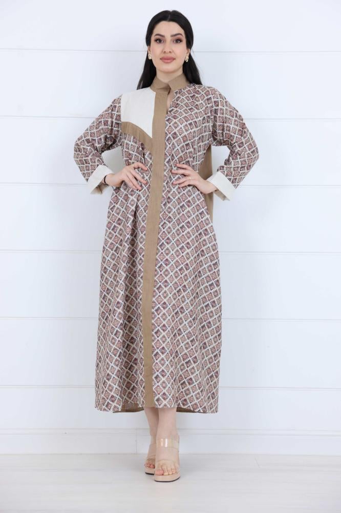 جلابية مشجرة صيفية لينن بتصميم هندسي أنيق – مزيج بين الفخامة والبساطة