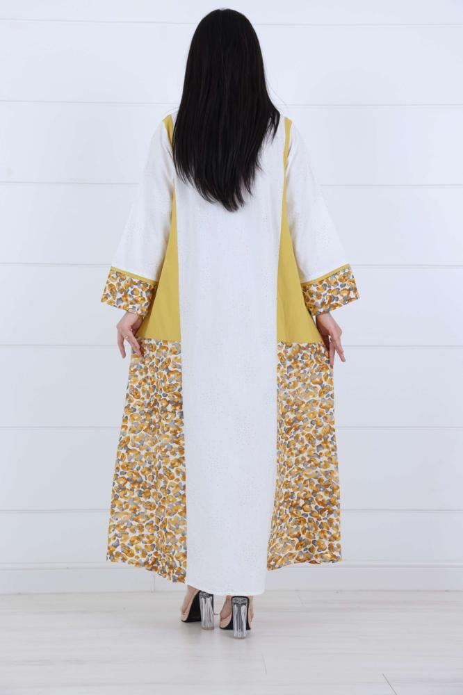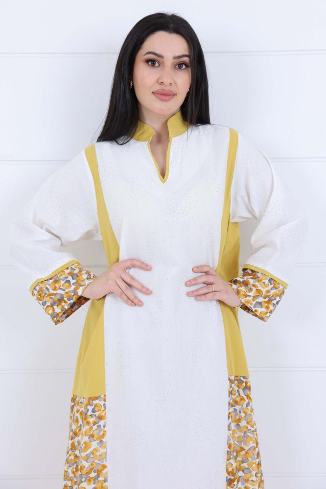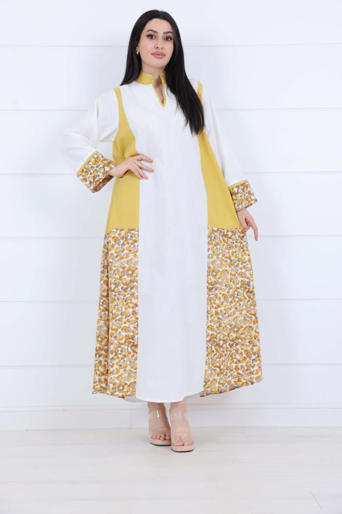 جلابية نسائي قطن شاش ناعم بورد على الجانين لون كموني