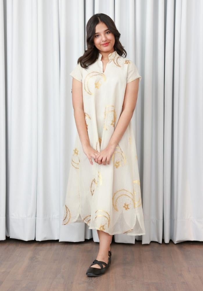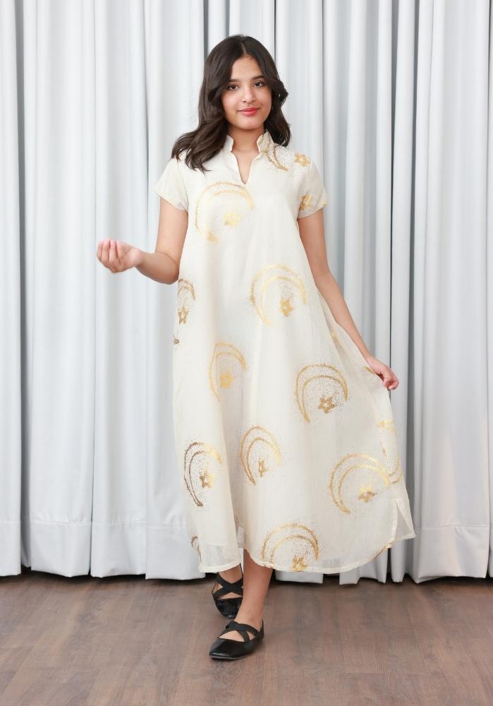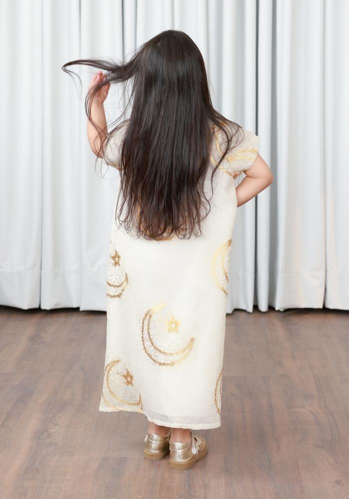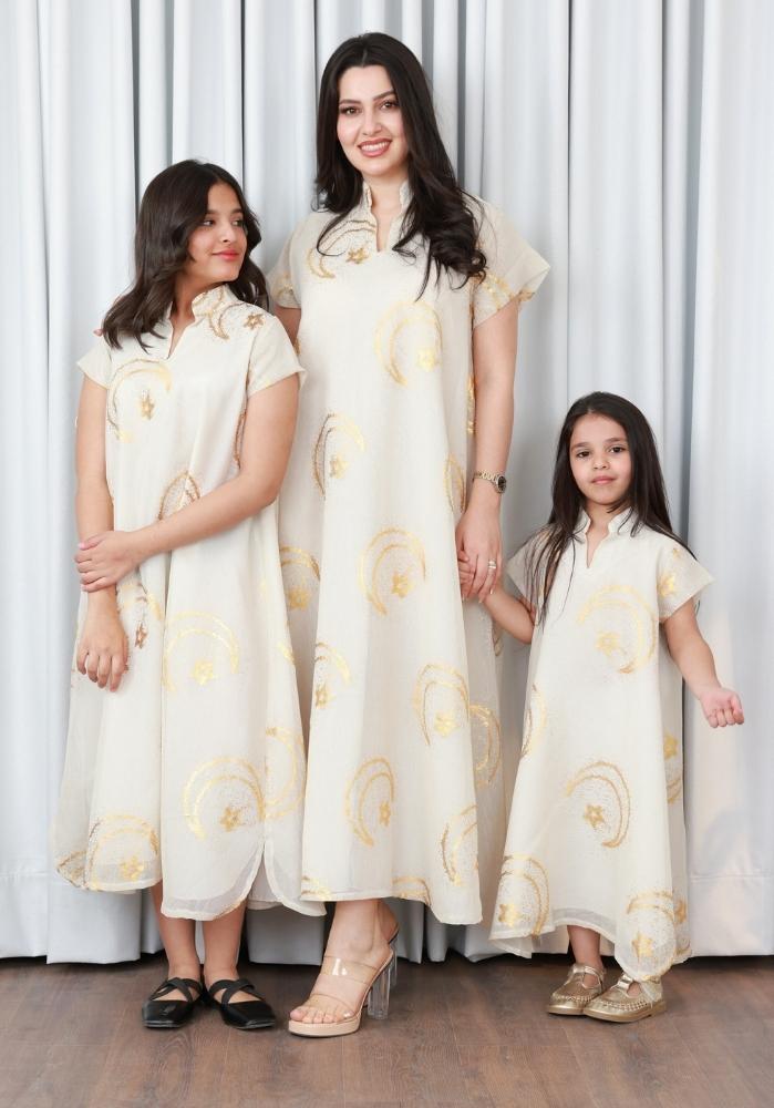 اجعلي طفلتك تتألق بإطلالة أنيقة ومشرقة مع هذا الفستان البناتي الرائع، المصمم بلون بيج فاتح ومزين بنمط الهلال والنجوم الذهبية التي تضفي عليه لمسة من الفخامة والجاذبية. تصميمه العصري يجعله مثاليًا للمناسبات الخاصة، الأعياد، والتجمعات العائلية، حيث يجمع بين الأناقة والراحة بأسلوب فريد.