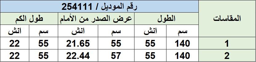 جدول المقاسات:-