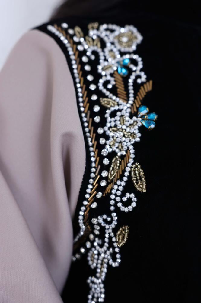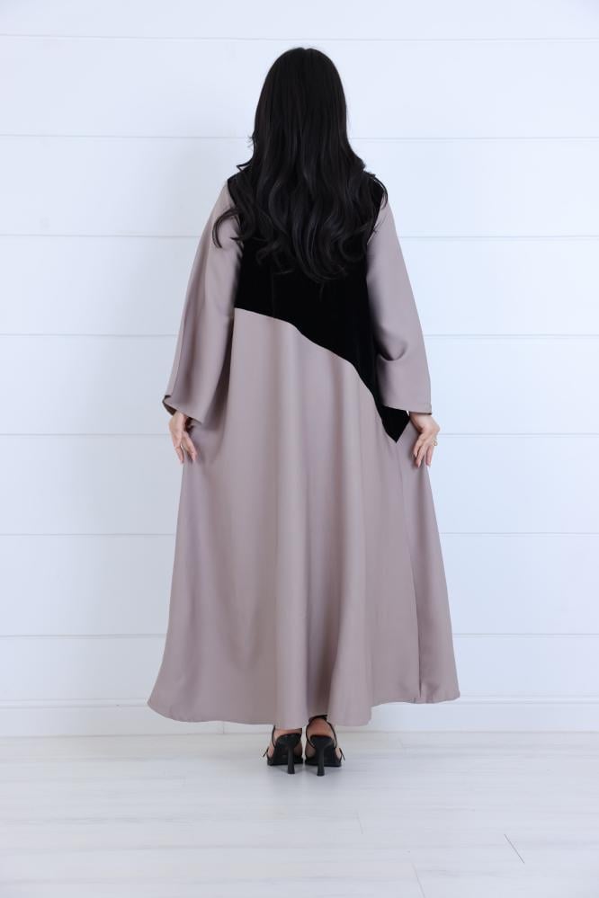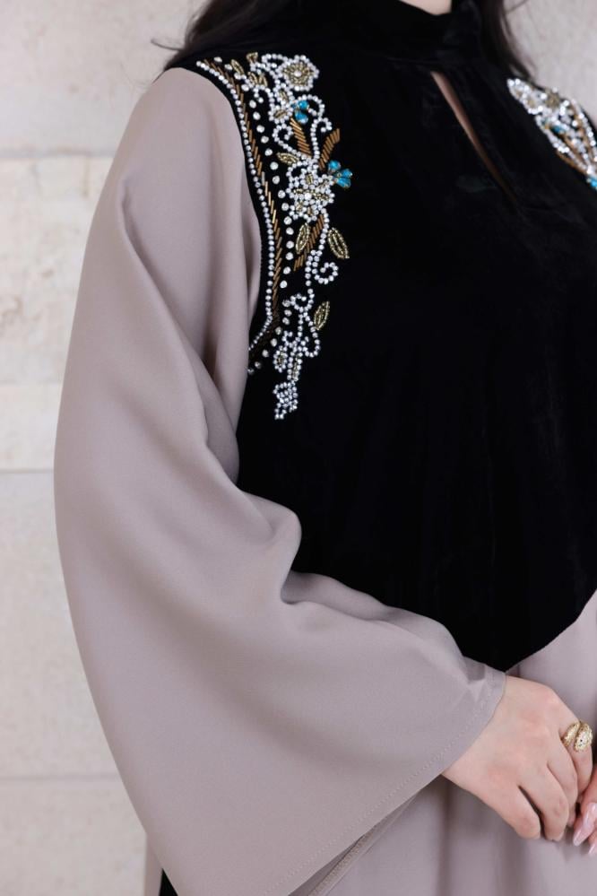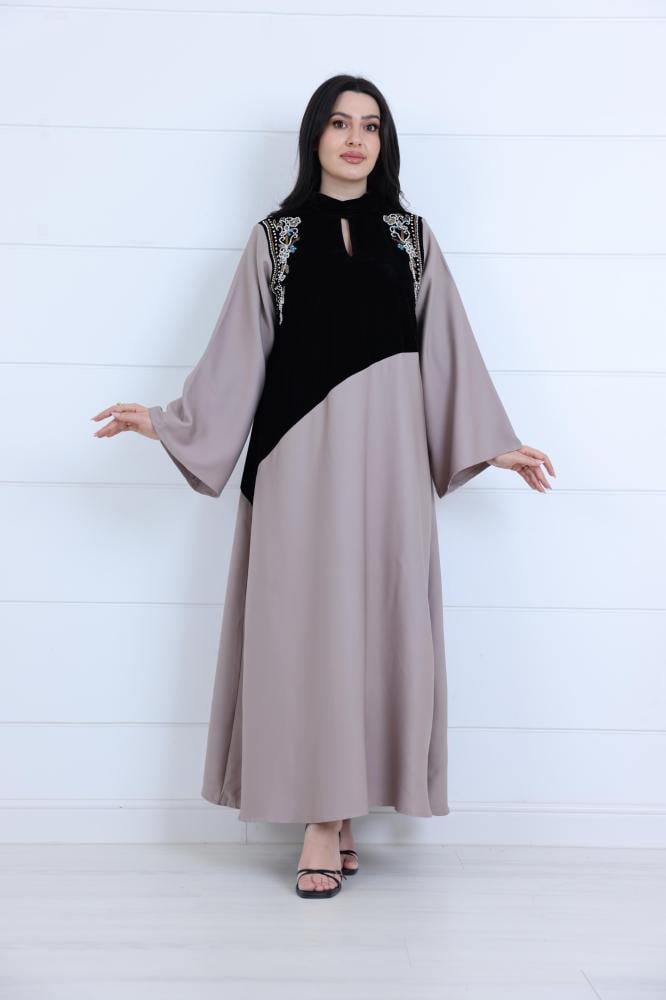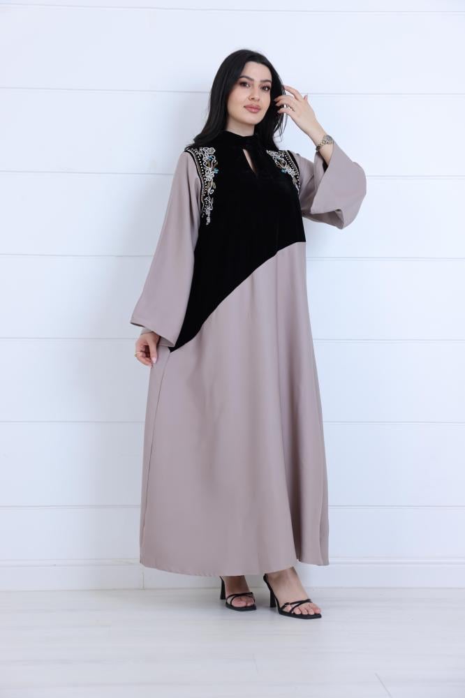 فستان شتوي كريب مخمل بشك وكريستال لامع لون بيج