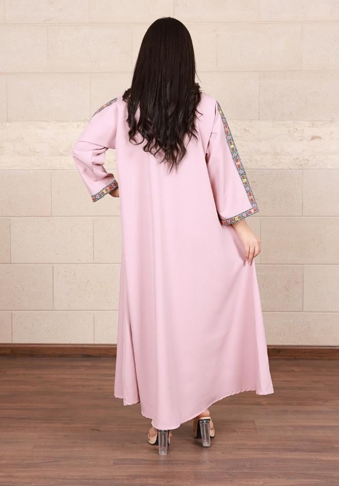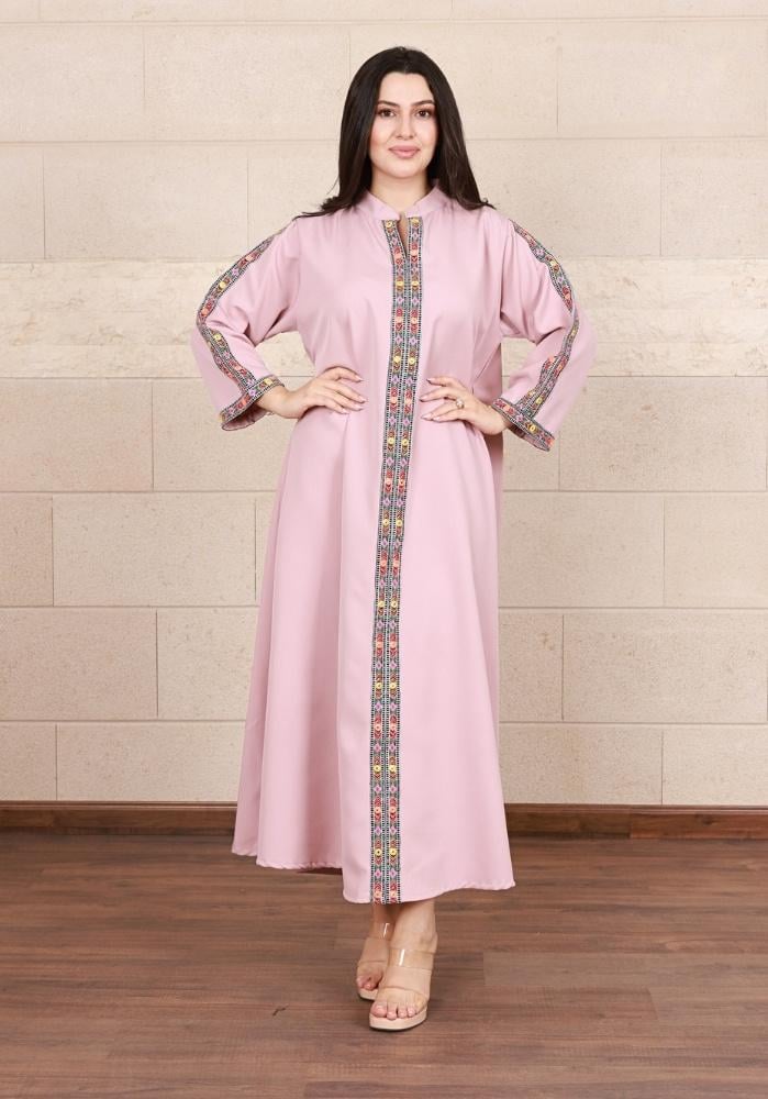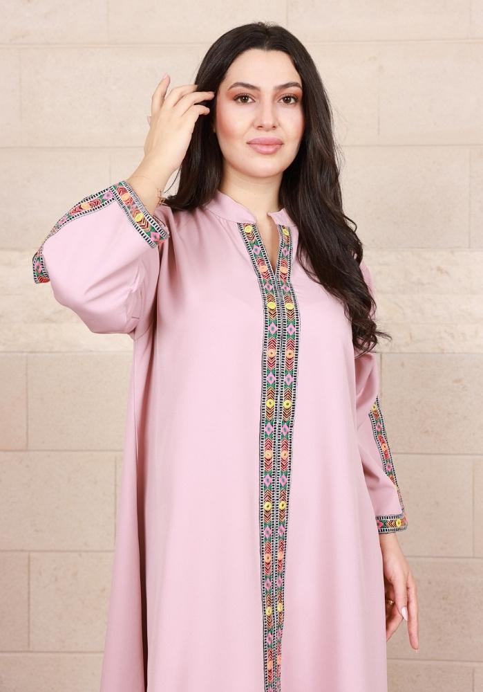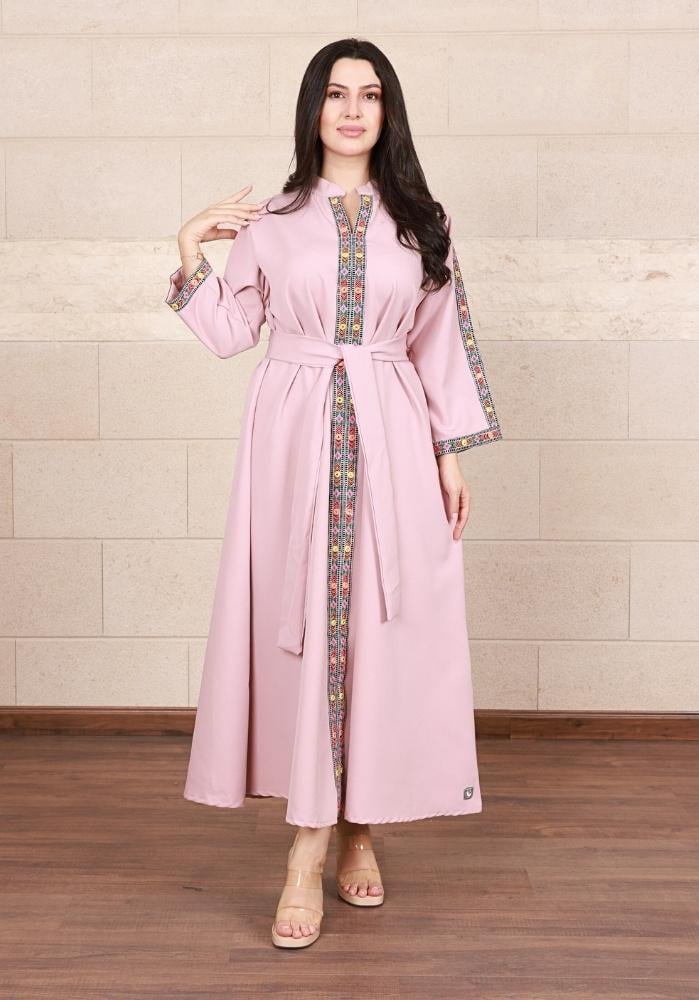 فستان صيفي مزين بتطريز عصري ملون مع حزام للخصر لون خربزي