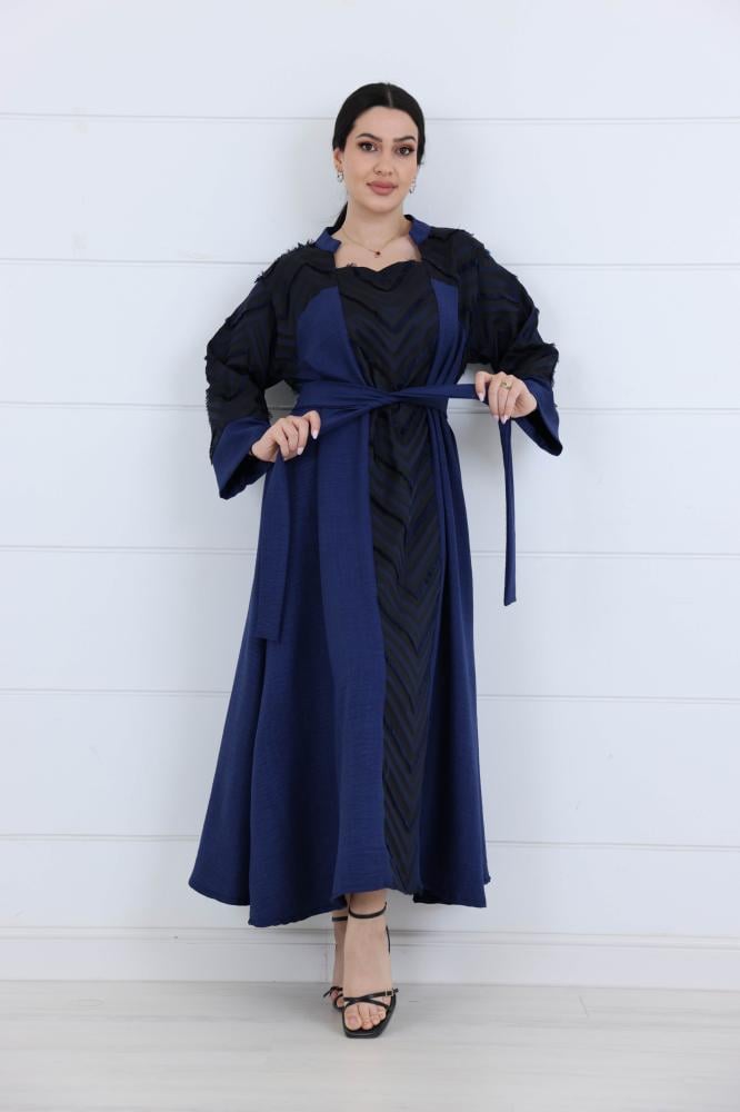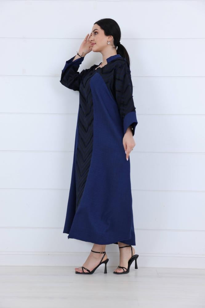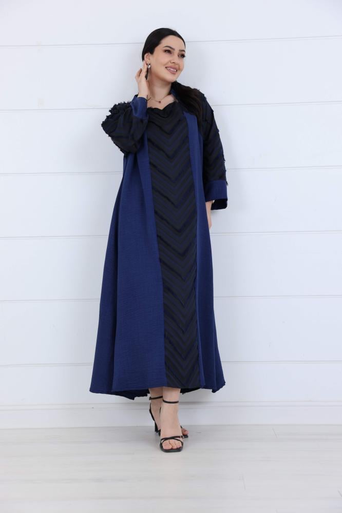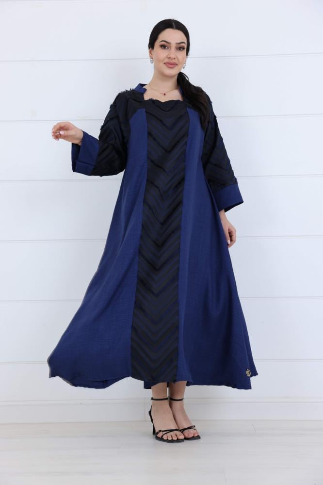 فستان كريب مزين على شكل مثلثات لون كحلي