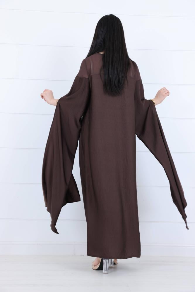 فستان لامية حرير بلمعة مطرز بالصدر لون بني