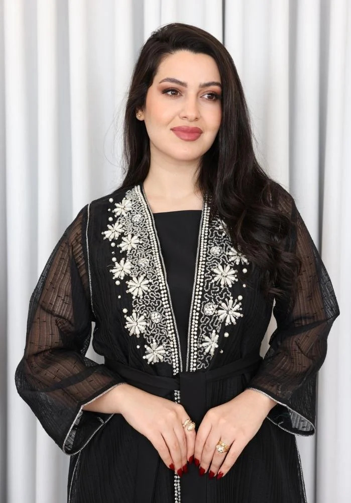 لمحبات الفخامة، إليكِ هذا الفستان الأسود بتطريز راقٍ وشك لامع يمنحكِ إطلالة راقية تناسب المناسبات المسائية.